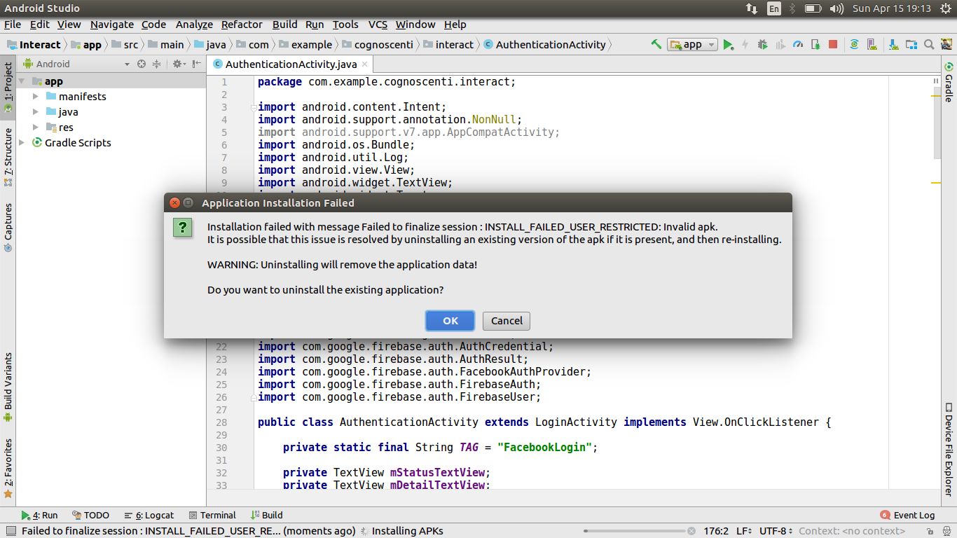 未能完成会话: INSTALL_FAILED_USER_RESTRICTED:无效的apk。