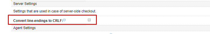 *.txt text eol=crlf但是这只处理了Github中的问题,我使用Github和TeamCity,所以当我通过TeamCity下载文本文件时,文件EOL没有设置为CRLF in TeamCity --这个复选框也需要被选中(在VCS中):