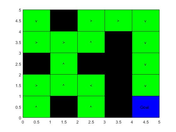 symbols' = [v > > > v > > ^ > v ^ ^ ^ > v > ^ < > v ^ ^ ^ > >]我试图在解决迷宫的背景下,为马尔可夫决策过程展示我的决策。我要怎么设计出这样的东西呢?Matlab更好,但是Python很好。