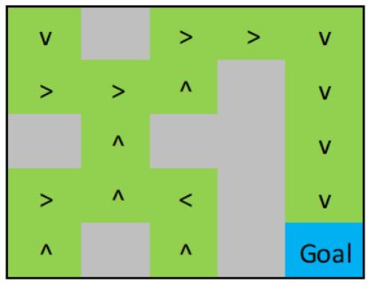 假设我有一个函数foo(policy_vector,r),它将策略向量的元素映射到r中的元素,例如1=UP、2=Right、3=Down、4=Left。MDP的设置使得墙状态永远不会实现,因此这些状态的策略在图中被忽略。