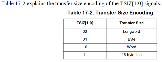 同一章的表17-2显示了支持的传输大小(由一个名为TSIZ1 1:0的信号指定)。