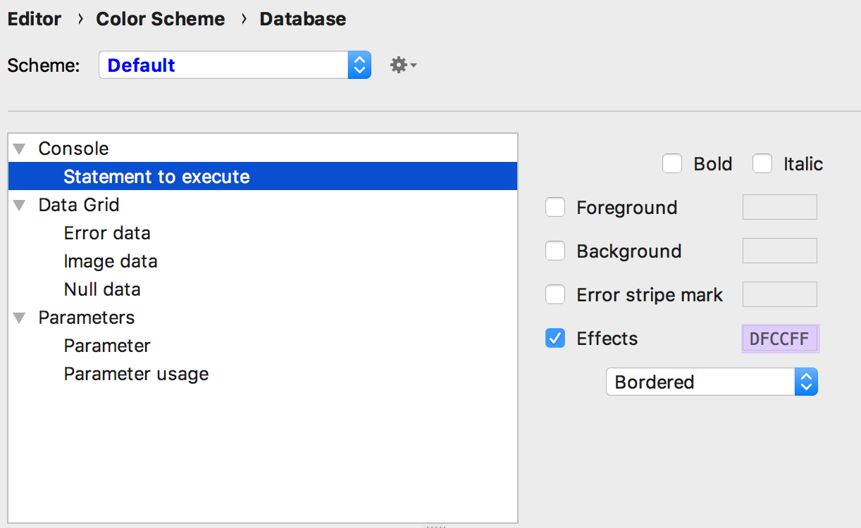 是否可以禁用DataGrip的紫色行语法突出显示功能?我的所有代码都被这些行包围了,在设置时我找不到正确的选项。