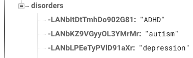 { "disorders": { "ADHD" "autisme" "depression" "..." } }