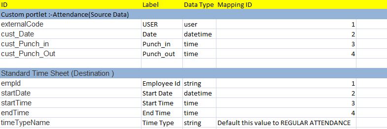 我希望利用员工中央超时的功能来显示员工的打卡和出拳时间。这是否可能实现从自定义MDF (例如cust_Clock_time )到EmployeeTimeSheetEntry文件(通过HCI )的打孔时间和冲孔时间字段的映射?