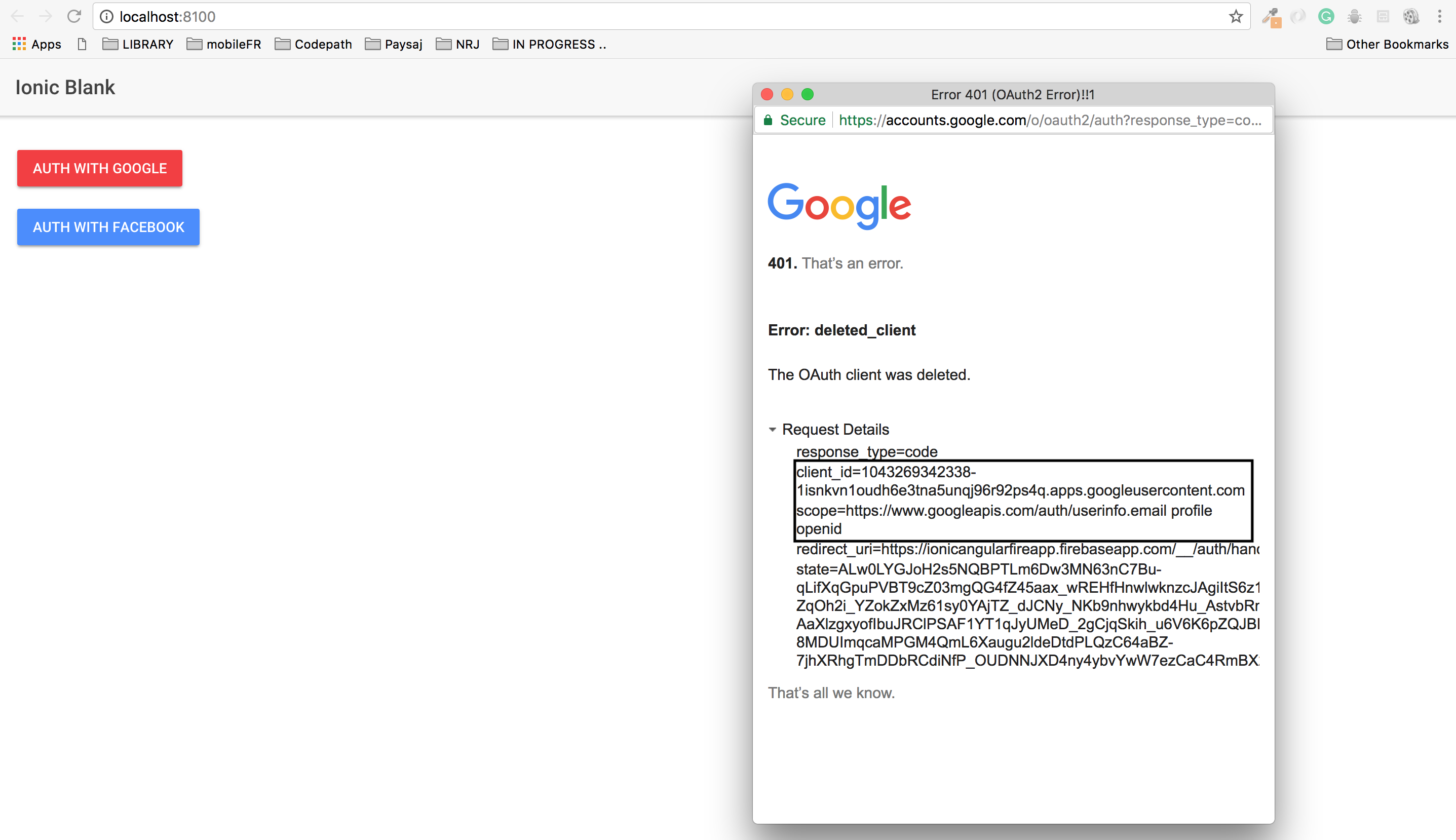唯一的问题是浏览器似乎保留了旧的clientID (现在已删除)。