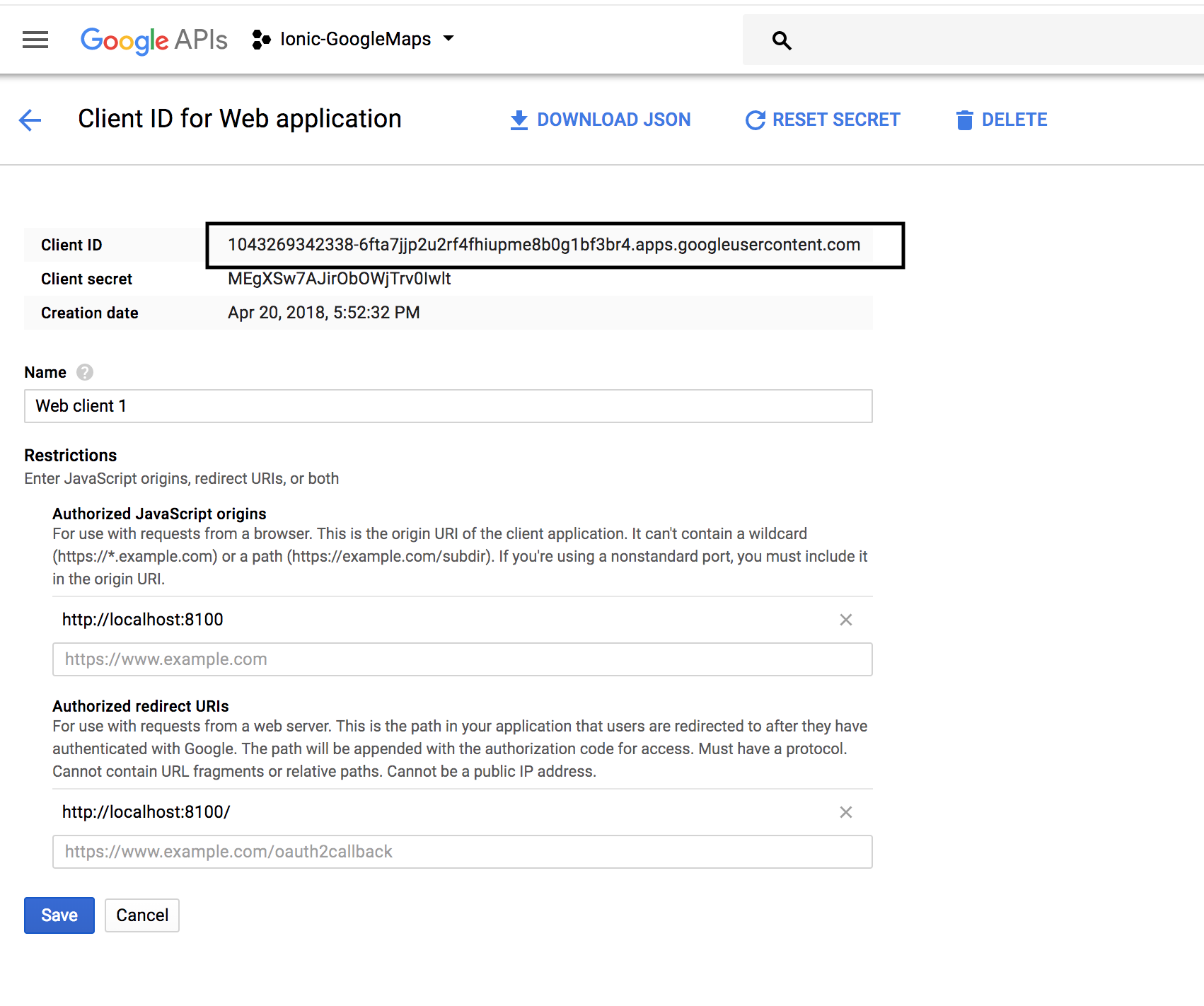 我在控制台中创建并生成了一个新的clientID。