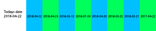 DateTime today = dates.Where(x => x == DateTime.Today).First();将来的日期应该按最近的日期进行排序(例如,今天=8,我们的日期是18,9,11应该是=> 9,11,18)
