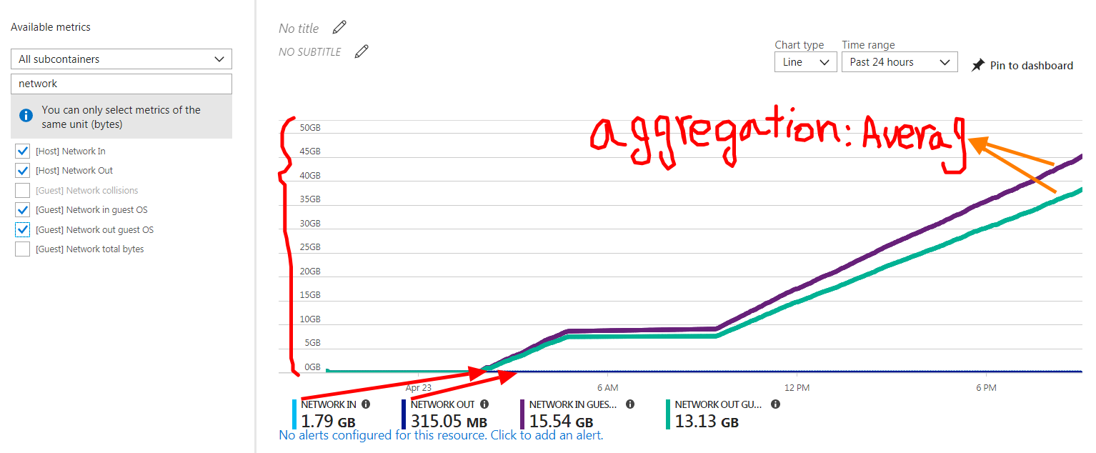 从Azure门户,我设置诊断设置和指标存储到所选的存储表中。但是,在存储的度量与我在Azure门户中看到的内容之间有一些不同。在Azure门户中,我可以从Metrics列表中选择Network In和Network Out (参见下面的屏幕快照):
