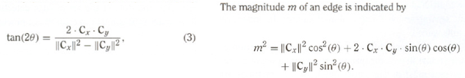 我决定用Java编写整个程序,因为用给定的公式看起来很容易。我用Java创建了一个窗口,我以sRGB映像的形式读取输入图像,并将其转换为CIEL_a_b* (因为这是任务的一部分)。我成功地应用了确定偏导数的Sobel核(Cx,Cy)。然而,我仍然坚持方向公式,并对其进行编码。