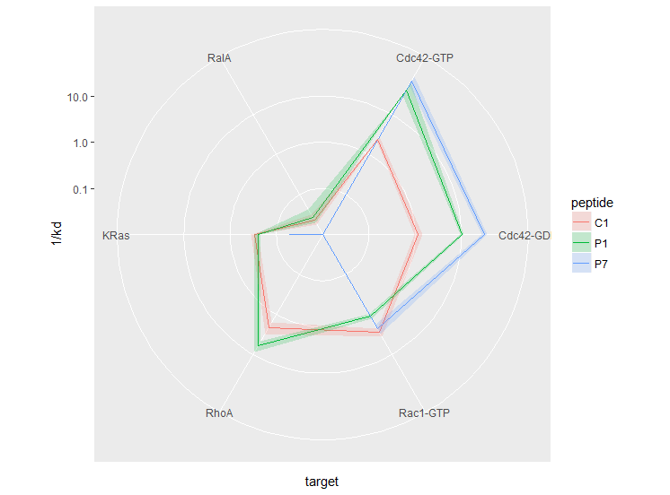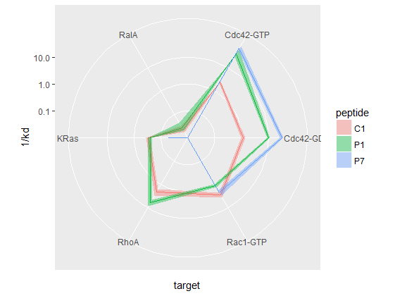 geom_polygon(aes(group = peptide, colour = peptide), fill = NA, show.legend = F) +