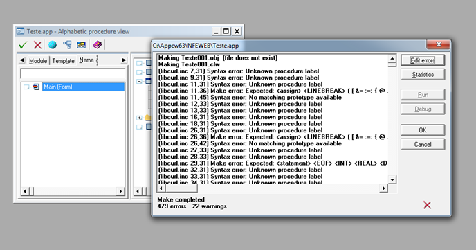 但是在创建一个窗口和一个按钮,并将上面的代码放在按钮源区域之后,它就不能工作了,特别是包含.inc文件的行