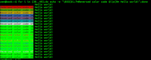 echo -e "\033[31;7mHello world\e[0m"这在任何背景下都是可读的,比如这个gif的第二行:
