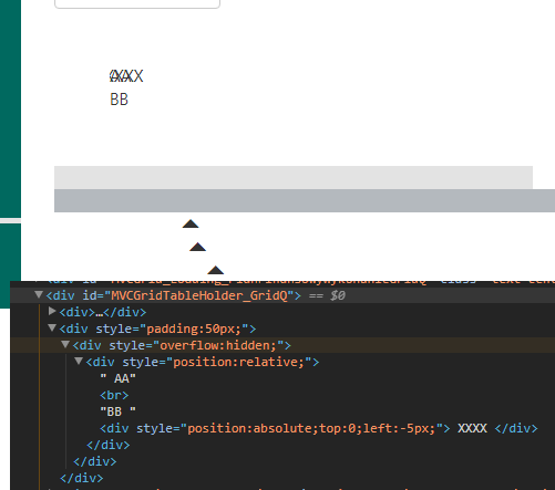 </div>您可以看到,XXXX与AA重叠,但向左移动。XXXX被主容器裁剪掉。