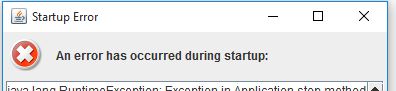 当我启动我的应用程序时,会出现一个飞溅的屏幕。在此期间,我试图建立一个数据库连接。如果失败,应用程序将发出错误消息。同时,会弹出来自install4j的错误消息。