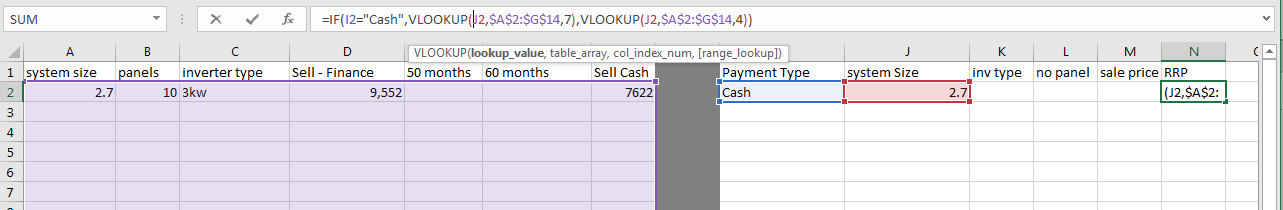 =IF(payment = "Cash", vlookup(system size ,data table,cash price),vlookup(system size,datatable,finance price)如果你有超过两到三个价格水平,如果声明将是笨拙的,而带有索引/匹配的vlookup将是一个更好的方法。
