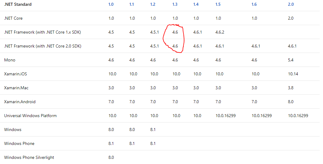 如果您查看.NET标准的文档化,您将看到版本1.3与.NET Framework4.6兼容: