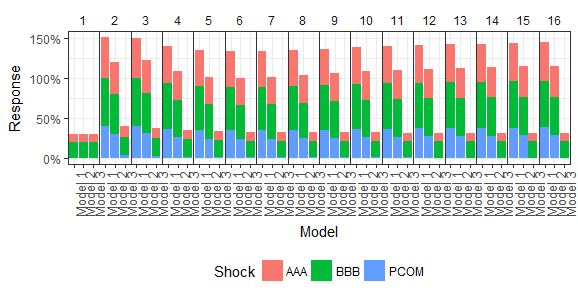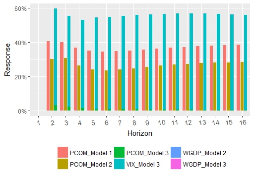 ggplot(gdp_br, aes(as.factor(Horizon), Response, fill = Shocks, group = Models)) +