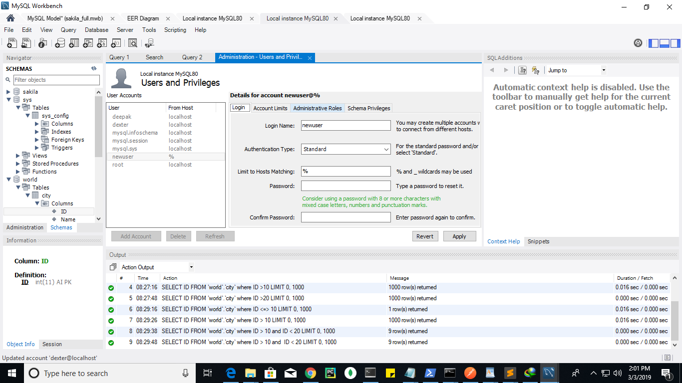 转到MySQL工作台->服务器->用户和特权
