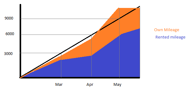 我有一个桌子栏,由租来的里程和我自己的里程组成。