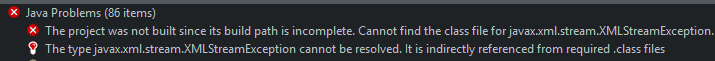 我从stax-api文件中删除了pom.xml依赖项,问题就消失了。