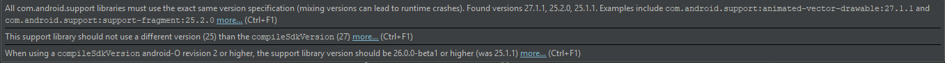 所有com.android.support必须使用完全相同的版本规范。