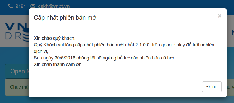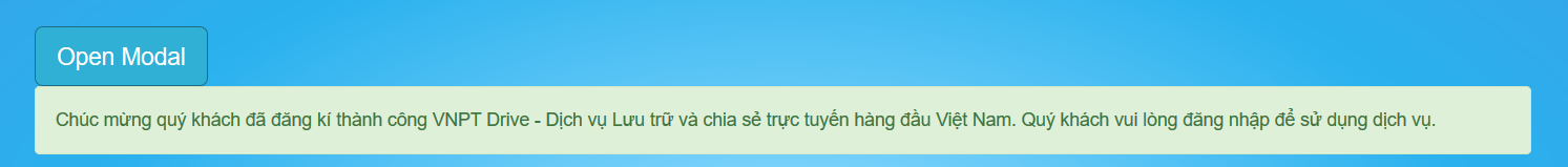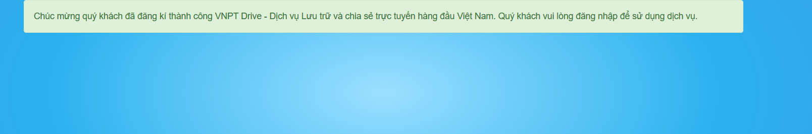 Chúc mừng quý khách đã đăng kí thành công VNPT Drive - Dịch vụ Lưu trữ và chia sẻ trực tuyến hàng đầu Việt Nam. Quý khách vui lòng đăng nhập để sử dụng dịch vụ.<br>
