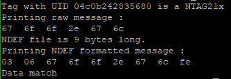 printf("Printing NDEF formatted message :\n");
