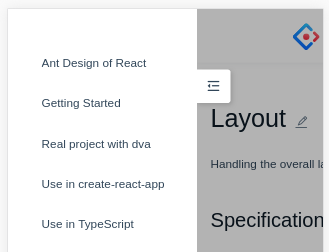 }我想要实现的是,当使用移动视图端口访问蚂蚁设计文档网站时,Sider效果将页面内容可视化地推到右边。