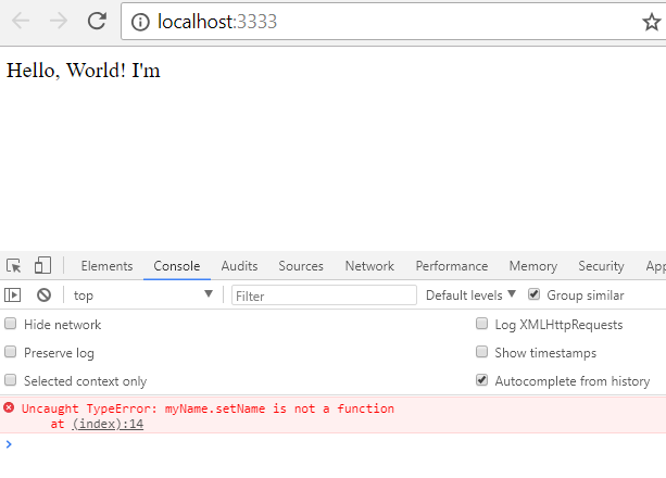 </html>下面是我得到的错误的屏幕截图,它是Uncaught TypeError: myName.setName不是一个函数