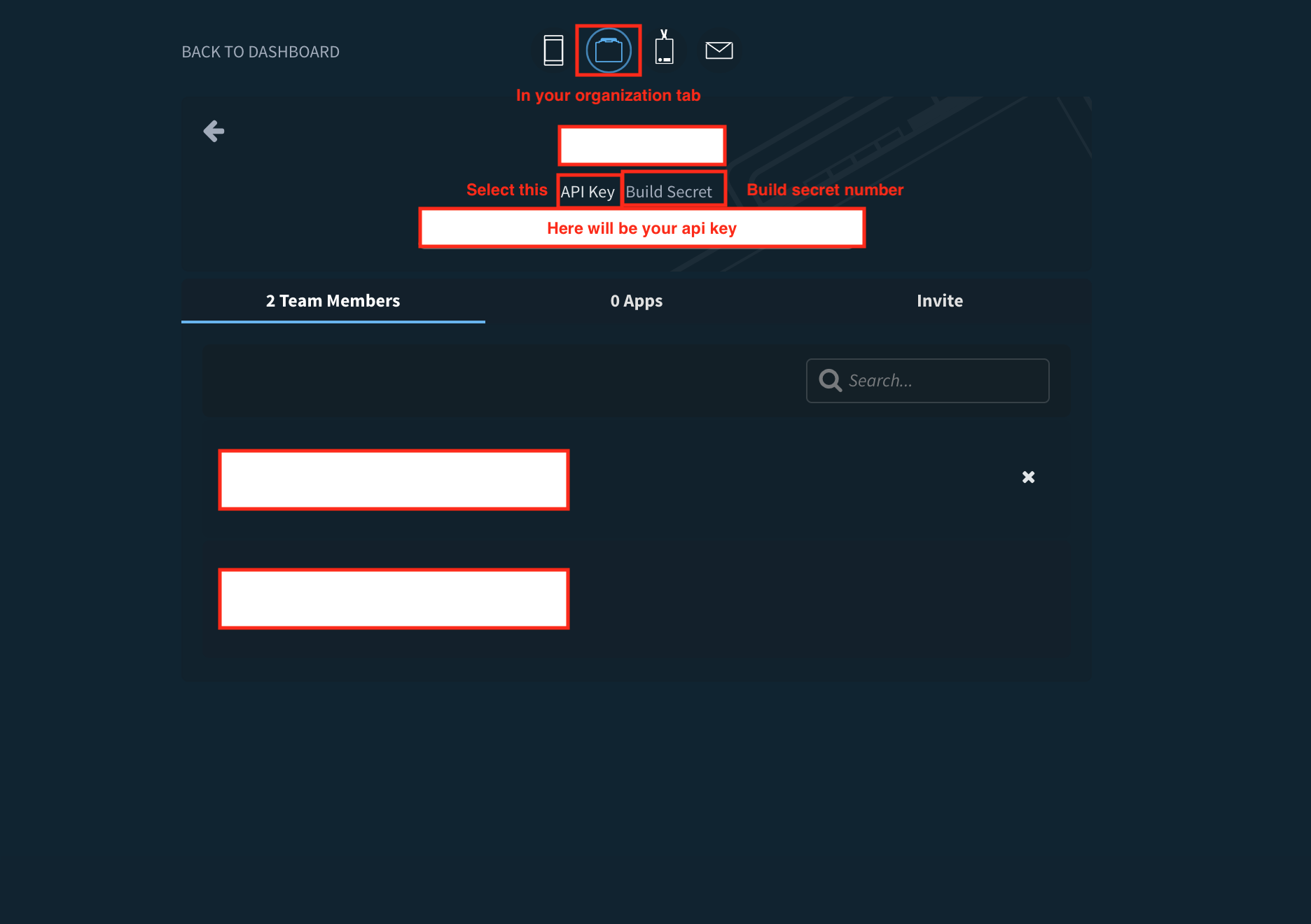 在fabric组织页面中选择API键。