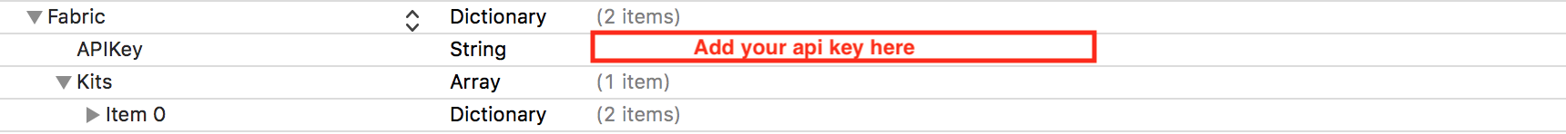 [Crashlytics startWithAPIKey:@"YOUR API KEY HERE"];https://stackoverflow.com/questions/50287216