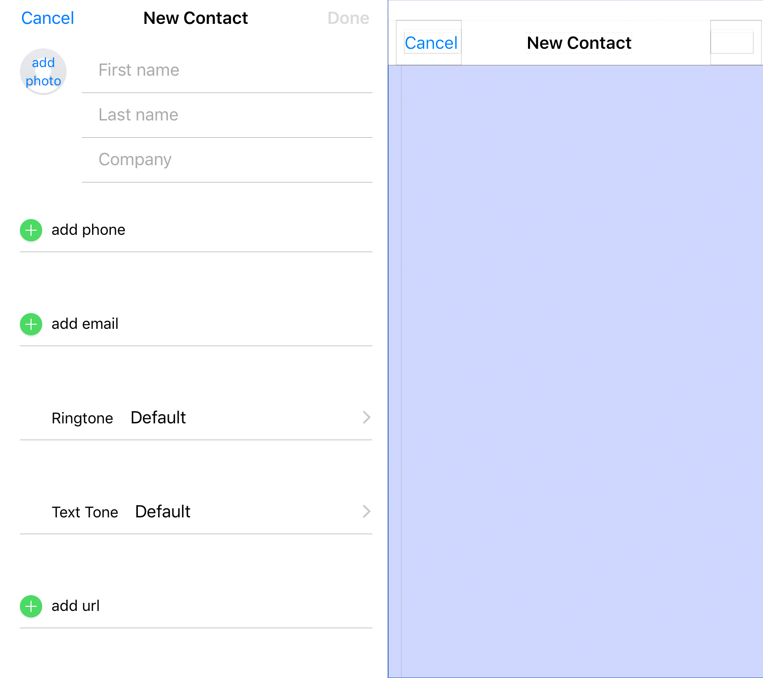 UIRemoteView是一个存在于其他进程中的视图。在这种情况下,联系人应用程序可能会使用一些XPC服务来为其他应用程序提供联系人记录和UI来编辑它们。因为视图处于另一个进程中,所以您无法通过查看自己流程中的视图层次结构来了解视图是如何生成的。