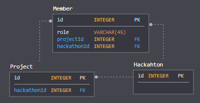 成员可以是项目或黑客马拉松的成员。项目是黑客马拉松的一部分。我在找哈卡顿和儿童项目的所有成员。