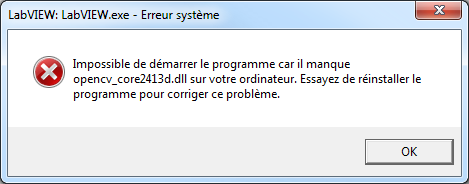 我终于解决了这个问题。我只需将OpenCV的DLL文件复制/粘贴到LabVIEW库的同一个目录。