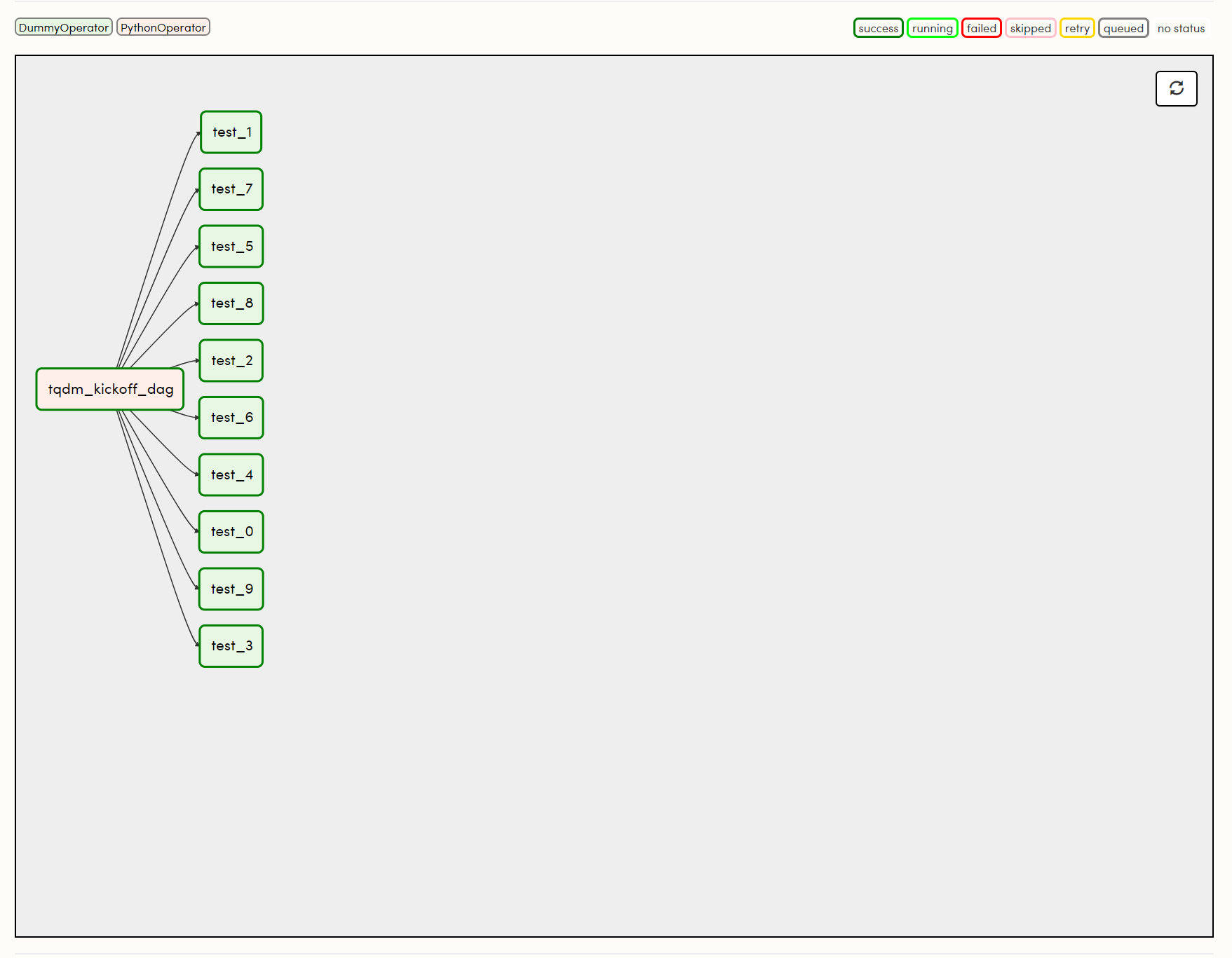在这种情况下,我们希望dummyOperator先开始,然后在下游任务开始之前做一些事情。这使得清除失败的运行变得更容易,就像我们可以同时清除虚拟操作符和下游任务一样。