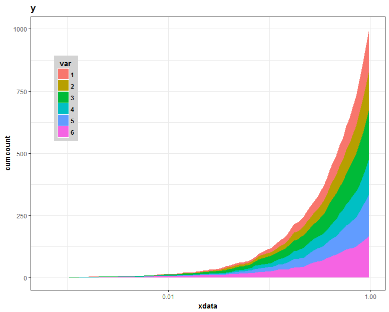 pp <- ggplot(dt, aes(x = exp(mid), y = cumcount, fill = as.factor(var))) +