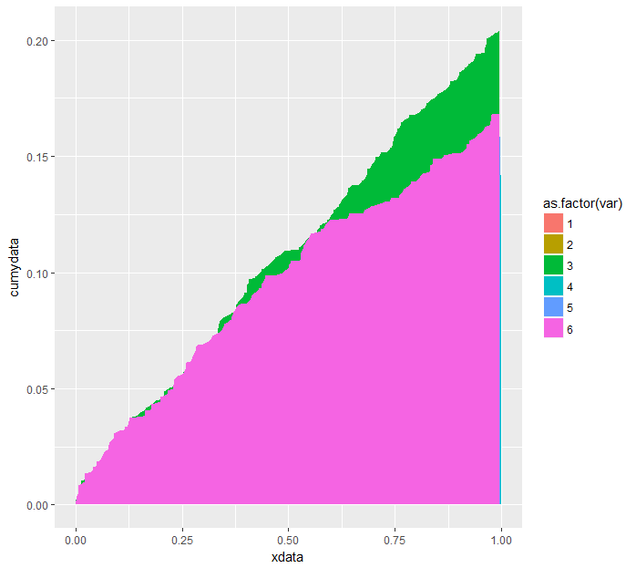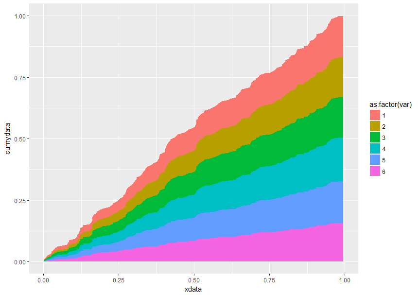 ggplot(dt, aes(x = xdata, y = cumydata, fill = as.factor(var))) +