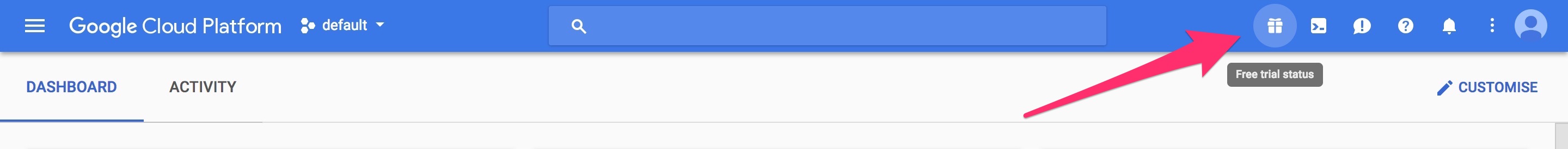 您可以通过Google平台控制台从免费试用升级到付费帐户。单击页面顶部的“升级”按钮。如果没有看到升级,点击页面右上角的免费试用状态图标(类似礼品盒图标),升级就会出现。