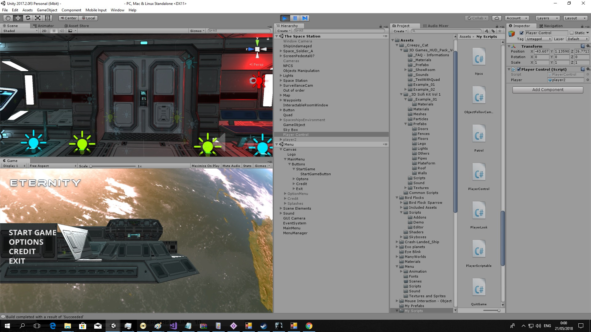 由于活动场景是空间站和player2离开游戏,从主菜单开始,而是用天窗和空间站场景的其他物体开始。