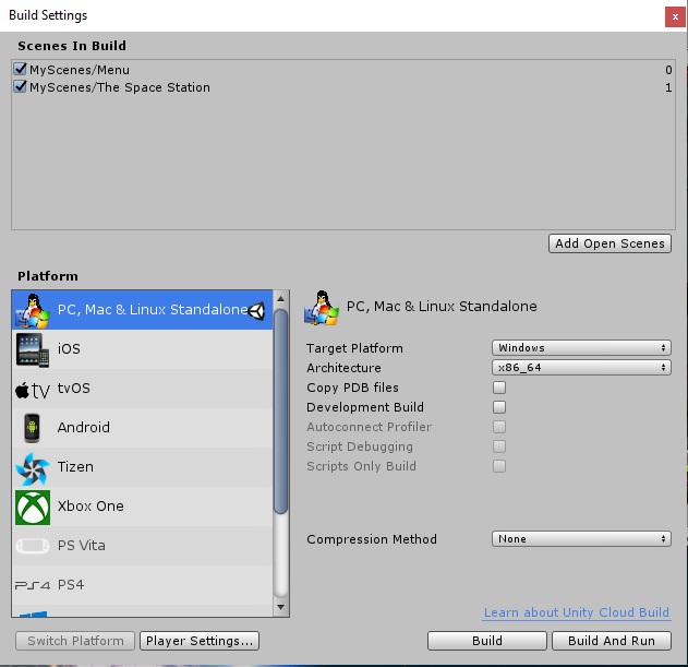 这是构建设置的截图..。窗口:我不知道为什么它在编辑器中正常工作,但在运行exe构建的文件时却不工作。