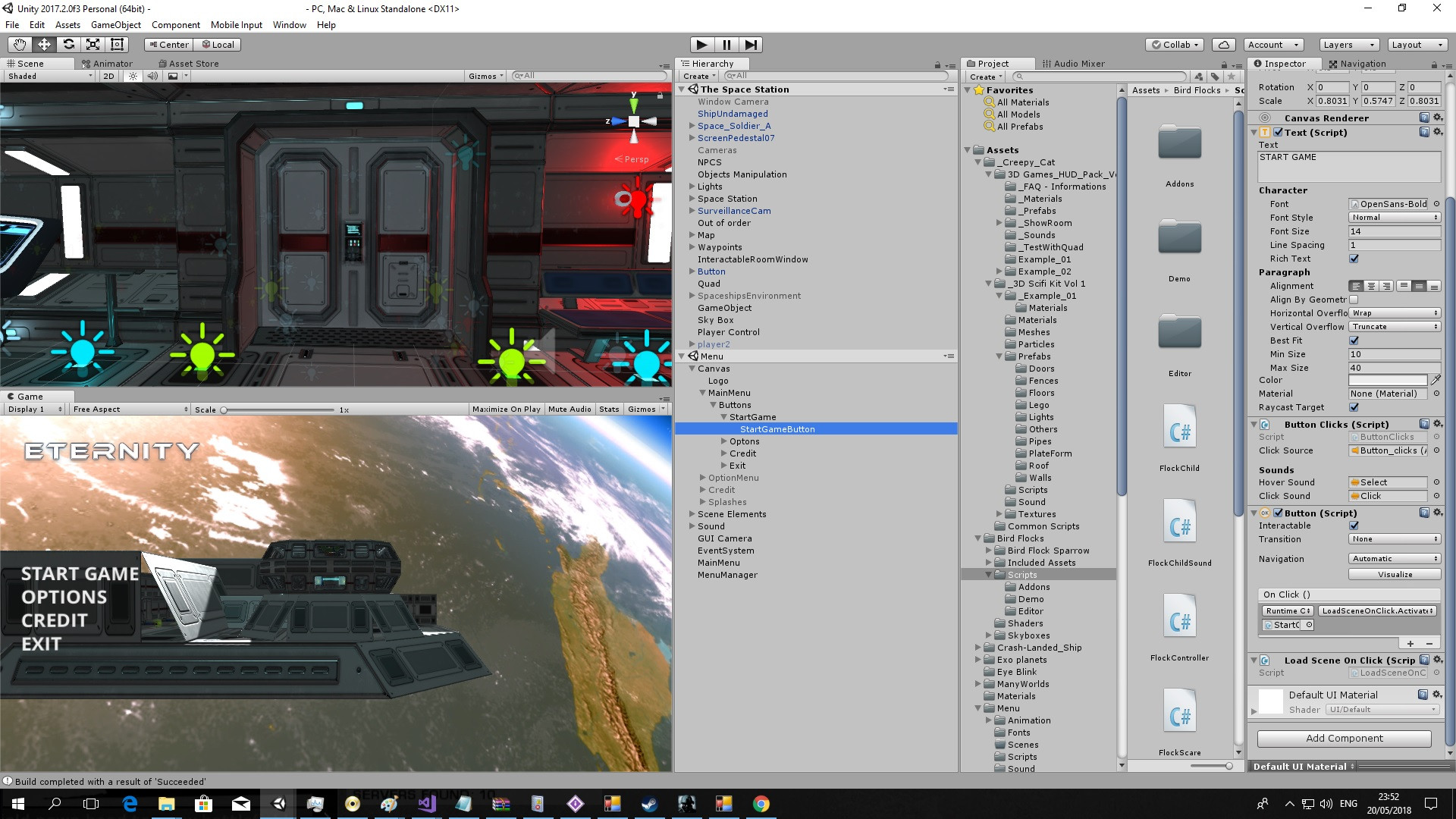 }一旦“空间站”的场景被加载,我就把它变成了SetActive场景。它给我看了菜单(主菜单)和一些“空间站”物体和天窗。