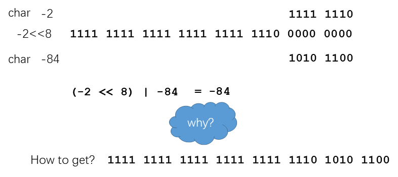 左移负数的行为是没有定义的,在C++14之前,您很容易受到signed char的不同补充方案的影响。(如果C++14 signed char和char是signed,则必须是2的补码。)