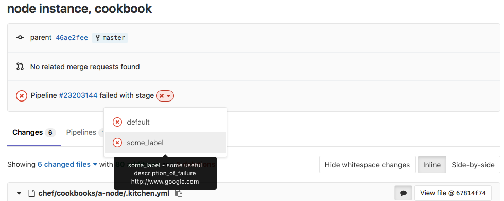 curl --request POST --header "PRIVATE-TOKEN: XXXXXX" "https://gitlab.com/api/v4/projects/XXXXXX/statuses/67814f7489214e91738680b433679224993dc1c4?state=failed&name=some_label&description=some%20useful%20description_of_failure%20http://www.google.com&target_url=http://www.google.com"