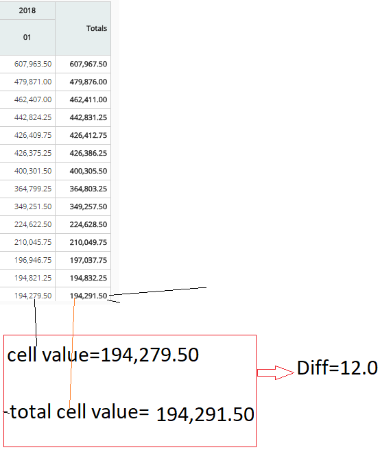 我使用的是pivottable.js,除了排序之外,一切都很好。这里的问题是,当我尝试使用整列排序时,总列显示的值是错误的,即实际上单元格值和总列单元格值相差很小,如图所示。