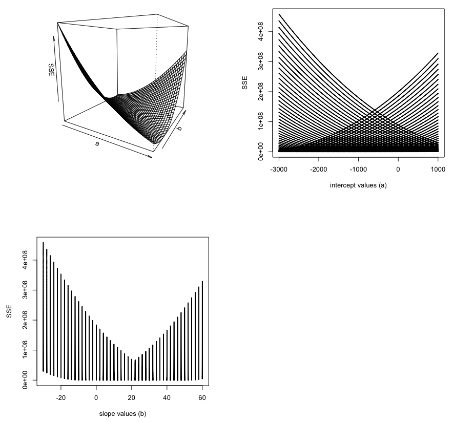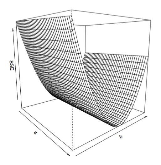 xlab="a", ylab="b", zlab="SSE",