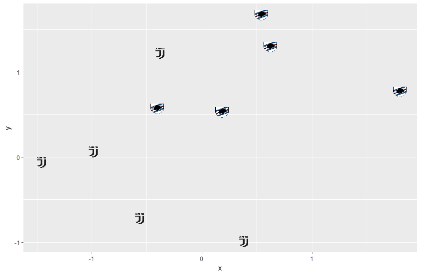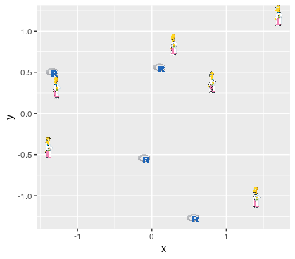 ggplot(d, aes(x, y)) + geom_image(aes(image=image), size=.05)你得到的结果如下: