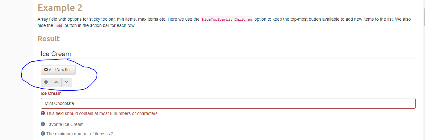 我正在查看正式文件,但是我没有发现任何关于禁用数组对象顶部按钮的方法,有什么方法可以禁用这些按钮吗?我试着将param toolbar设置为{}或null,但是按钮仍然存在。提前感谢