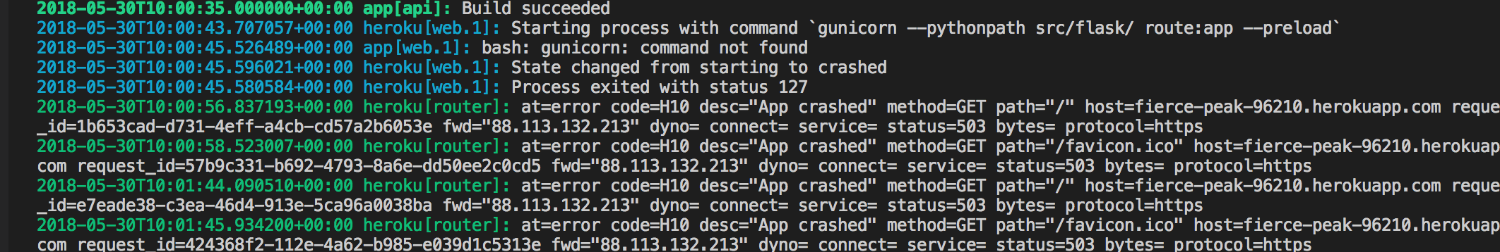 我正在尝试将我的python烧瓶应用程序部署到heroku,但它一直在抱怨bash: gunicorn: command not found。我的requirement.txt文件位于Procfile所在的根文件夹中。我的python代码位于src/server/中。