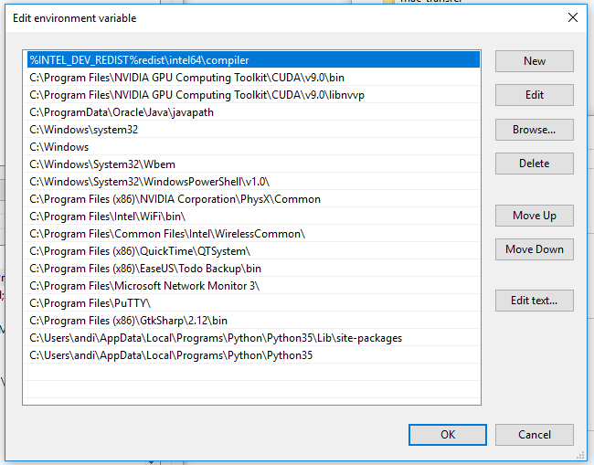 我的env路径包含python (在底部):