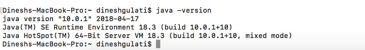 我的系统中的Java版本:-